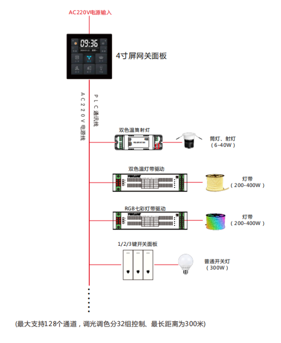 安全性與可靠性尤為,4寸觸屏自帶強切開關,即便系統(tǒng)出現(xiàn)故障,也能通過機械方式強制開燈,保障基礎照明不中斷。系統(tǒng)兼容性廣泛,無需調光的燈具可通過開關面板直接接入,普通電工無需技術即可完成安裝調試,大幅提升施工效率。