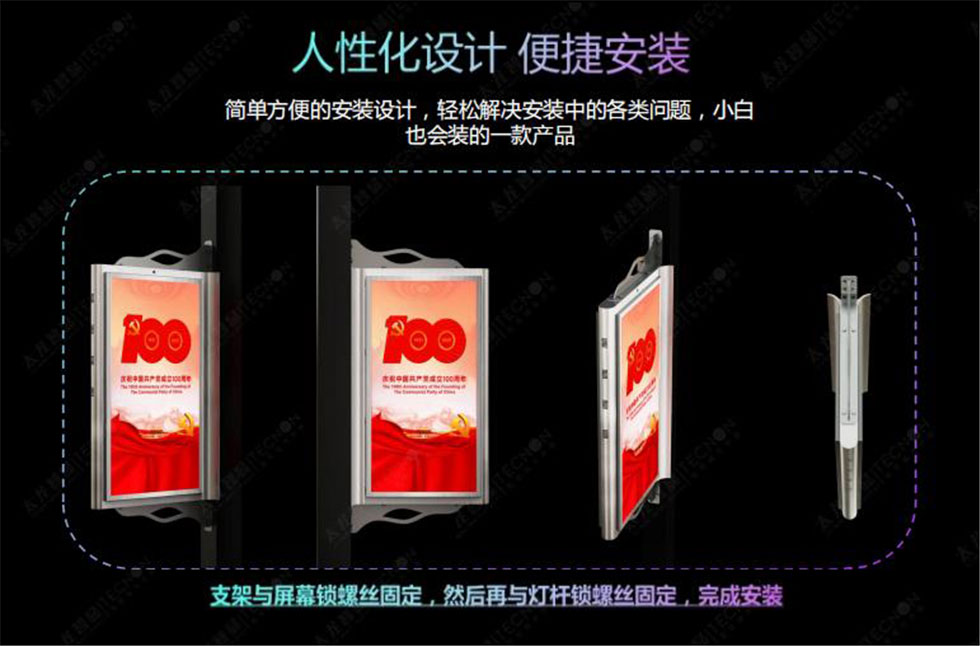 P3.846不銹鋼700*1400mm雙面LED燈桿屏,它具備外觀靚麗、輕盈、時(shí)尚、亮度高、高顯色系數(shù)、防水、防爆、防雷等特點(diǎn)。箱體采用獨(dú)有的外形設(shè)計(jì),外觀靚麗,輕盈時(shí)尚。采用標(biāo)準(zhǔn)化模組拼裝,燈面灌膠技術(shù),做到防水、防塵,能完美適用于戶外環(huán)境。燈桿屏上提前預(yù)留了專門的燈桿適配結(jié)構(gòu),安裝過(guò)程簡(jiǎn)單快捷,維護(hù)方便。加上輕便化的設(shè)計(jì)使燈桿屏能與智慧燈桿完美的結(jié)合。 立即咨詢
